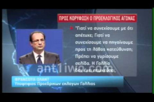 Αρχείο 16.04.12 | 20:31Σαρκοζί Vs Ολάντ Μία εβδομάδα πριν από τον πρώτο γύρο των εκλογών στις 22 Απριλίου στη Γαλλία, και θεωρείται βεβαιο...